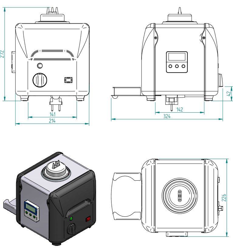 - Thermostatic control until 90°C, hold temperature = 50°C. (without overheating nor desiccation).