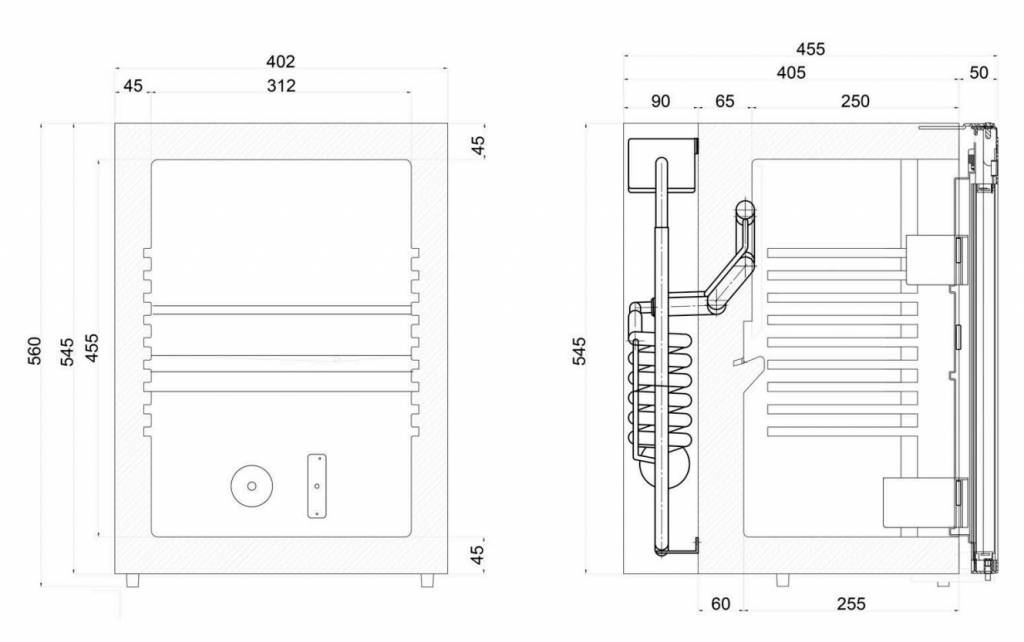 - Mechanical thermostat, T° +2° +12°.