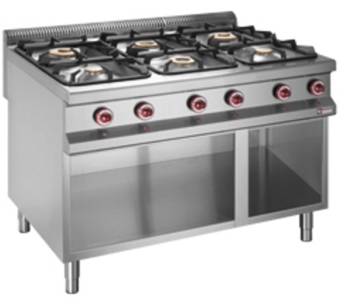 Gas Cooker with 6 Burners and Cupboard GN 2/1, 46440 kcal / h