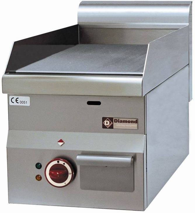 - Electric heating by means of stainless steel heating elements placed underneath the plate itself. Temperature regulation from 120°C to 320°C, by thermostat.