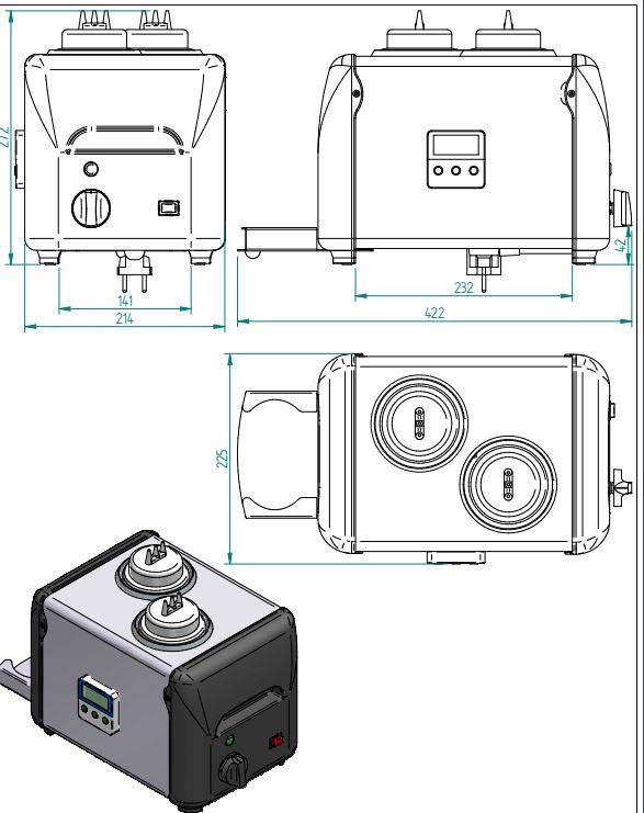 - Thermostatic control until 90°C, hold temperature = 50°C. (without overheating nor desiccation).