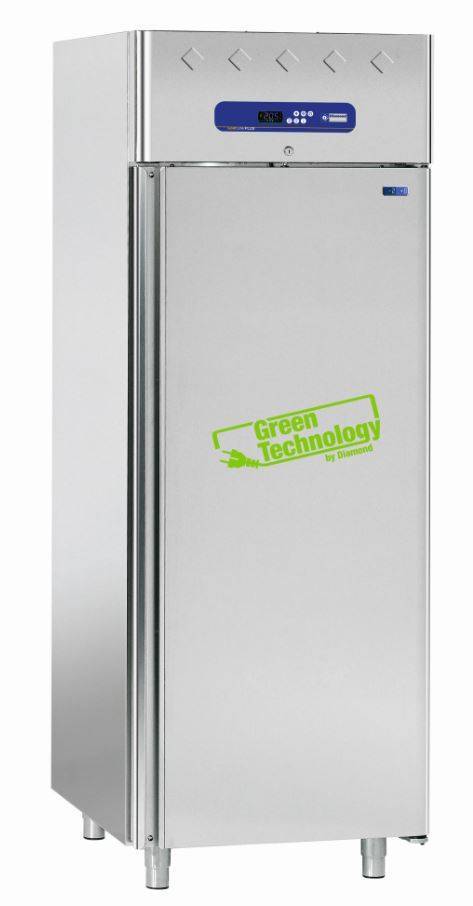 - "Diamond Green Technology" up to 70%* power saving. - Refrigerated group "tampon", tropicalized (+43°C). - Polyurethane insulation without CFC, thickness 85 mm "super insulated". - Exceptional services thanks to the homogenous distribution of the refrigerated air ("lateral flux") allowing an uniform temperature, guaranteeing the right preservation of the products (no drying of the foods in the refrigerators). - For delicate products (ex. pastries, etc.), possibility to activate the function (in the microprocessor), 2 levels of hygrometric regulation. - Regulation microprocessor (under closed box, 100% waterproof).