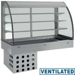 Refrigerated Display Rectangular, 5 x 1/1 GN, from -1 ° C to 7 ° C, with a Bent Glass, Built-in, with an Aggregate, Ventilated with Curtain, Silver
