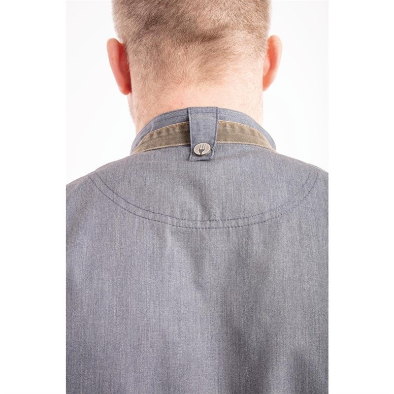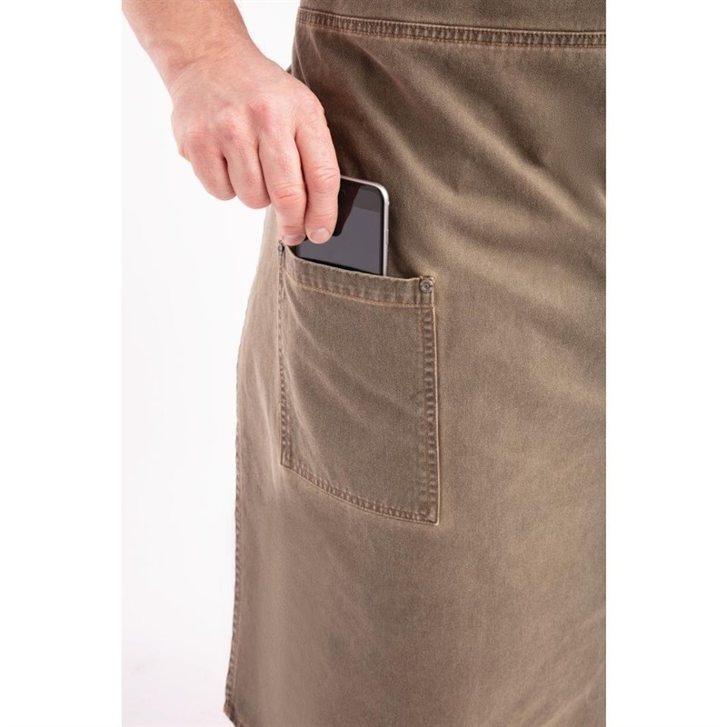 The Dorset Chef’s apron is part of the stylish Urban Collection. 100% cotton with an antique washed finish, an adjustable neck with grommet, a chest pocket, and a Mobile phone pocket with riveted ends.
