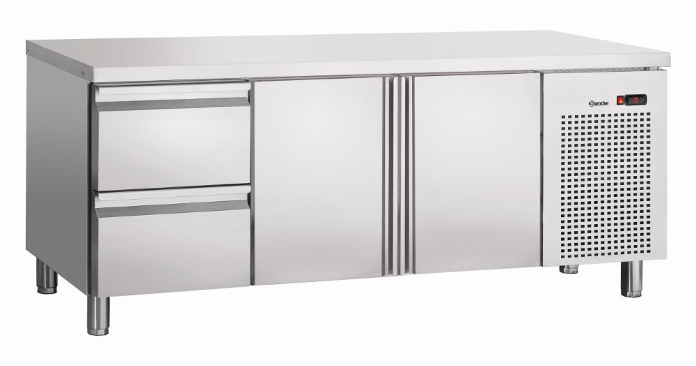 Double Door Refrigerated Table with 2 Drawers from 0° C to 10 °C, Side-Mounted Compressor