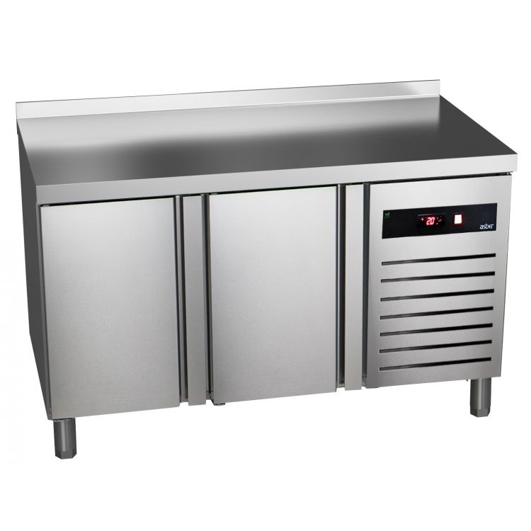 Double Door Refrigerated Table with Splashback 153 L, from -2 °C to 8 °C, Side-Mounted Compressor