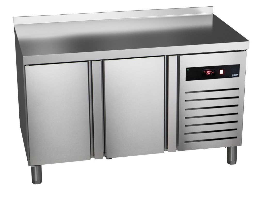 Double Door Refrigerated Table with Splashback 153 L, from -2 °C to 8 °C, Side-Mounted Compressor