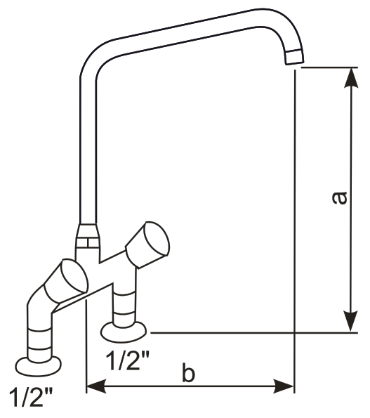 Sink mixer, two-hole with rotary knobs. Swivel spout. Slide the battery heads. Ferrule diameter cold and warm water - 1/2 ". Spacing connection pieces - 155 mm.
