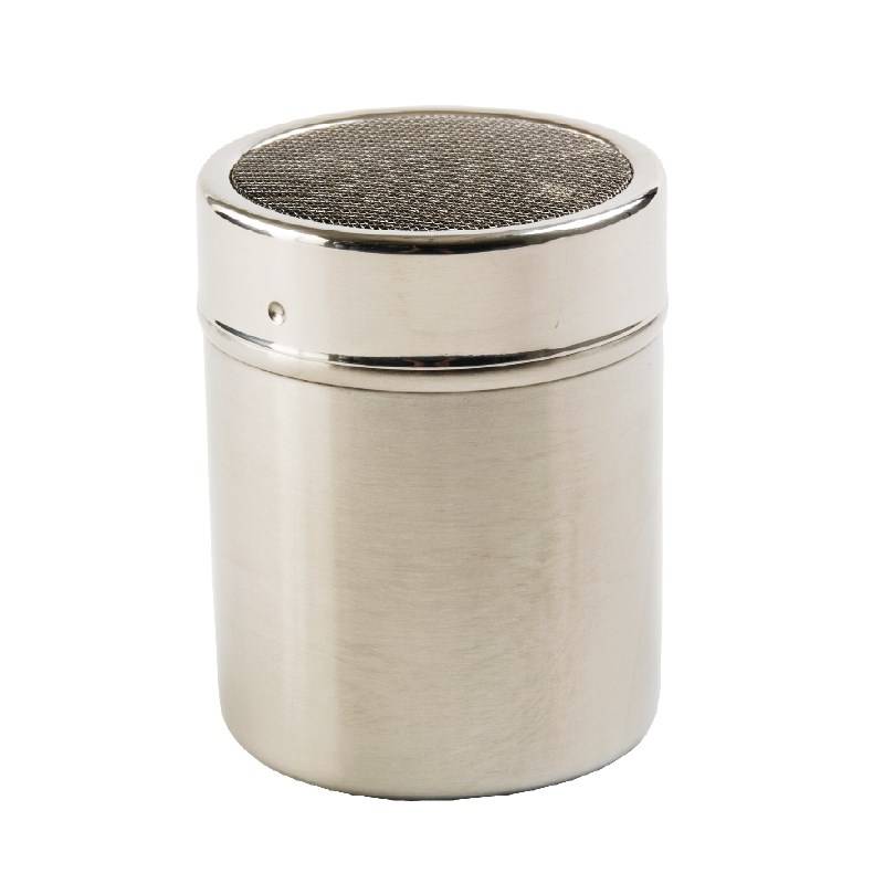 10oz/280ml stainless steel tin with wire gauze top for shaking flour, icing sugar, cocoa powder and powdered spices.