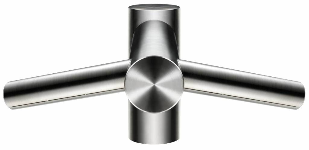 Usually in public bathrooms, the user must go to the dryer after washing their hands to dry hands. On the way, the water dripping from the hands leaves stains on the floor and poses a risk of slipping. Thanks to Dyson Airblade Tap, both activities are performed in one place. Hands are washed and dried under the tap.