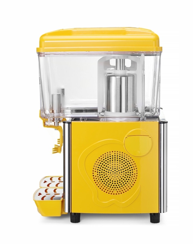 Two 12 liter containers with quick dispense tap. With temperature controller, temperature can be set between 0˚C and 10˚C. Containers can be removed to ease cleaning. Refrigerant: R290. Drip tray included.