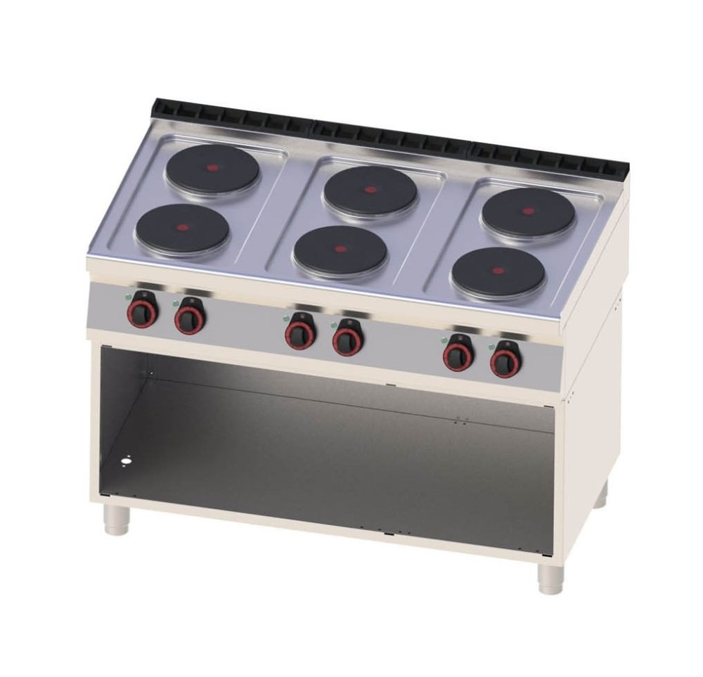 Electric Cooker with 6 Round Hot Plates ø 220 mm, Open Cupboard and 6-Step Adjustment, 15,6 kW