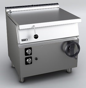 Lever system to raise the bowl. The bowl can be raised until it is vertical to empty it completely. The entire construction of the device made of stainless steel. A well designed with rounded corners and edges without. The large thickness of the bowl (10 mm) guarantees uniform heat distribution. Stainless steel bowl capacity of 60 liters. An area of734 x464 mm or 34 dm2. Pan bowl can be filled with water by zprzełącznikiem knob located on the front of the device. The double-walled cover with the stand with back to dehydration condensation in the direction of the tank. Compensation system to prevent sudden falls. Grip the front cover. Thermostatic temperature control of the pan bottom of the bowl, between 50 and 300 ° C, electrically heated by means of heating the steel located below the base of the tank.Specifications