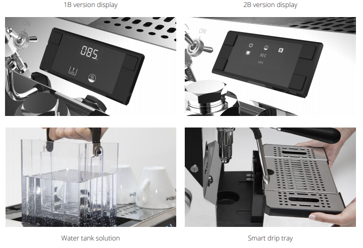 maintaining the shape of the iconic Office Leva, They have been carefully created. The result is a balanced design line and harmonious dimensions to get a compact but extremely sophisticated and high-quality coffee maker of one group