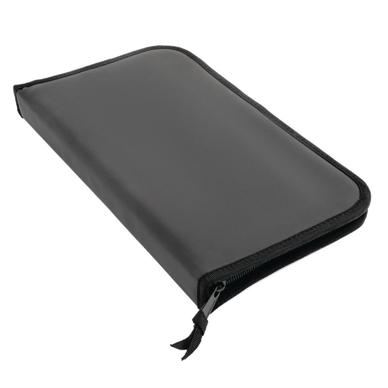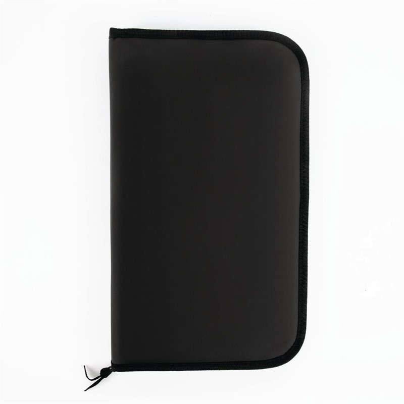 The heavy duty knife case by top brand Vogue helps you transport and store knives safely, with 7 slots for practical and convenient protection. This case features seven compartments with an easy to close and open zipper, making it easy to quickly pack away and take out your favourite chefs knives. (supplied empty).