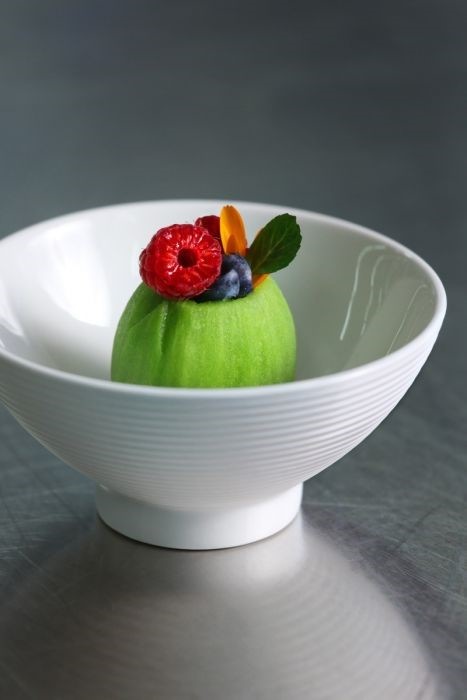 This results in a dazzling white vitro-porcelain called Polaris. Polaris is exceptionally strong, tested in the independent Lucideon (UK) laboratories and SFC (France), who specialise in ceramic product analysis. Polaris porcelain has passed all the obligatory tests with flying colours, including abrasion resistance, behaviour under high temperature, mechanical shocks. The perfectly smooth non-porous glaze guarantees very high levels of hygiene and durability. Particular attention is paid to how the underside of the dish is polished, to protect stackable plates in the long-term.