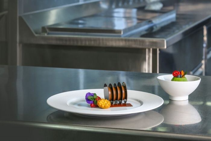 This results in a dazzling white vitro-porcelain called Polaris. Polaris is exceptionally strong, tested in the independent Lucideon (UK) laboratories and SFC (France), who specialise in ceramic product analysis. Polaris porcelain has passed all the obligatory tests with flying colours, including abrasion resistance, behaviour under high temperature, mechanical shocks. The perfectly smooth non-porous glaze guarantees very high levels of hygiene and durability. Particular attention is paid to how the underside of the dish is polished, to protect stackable plates in the long-term.