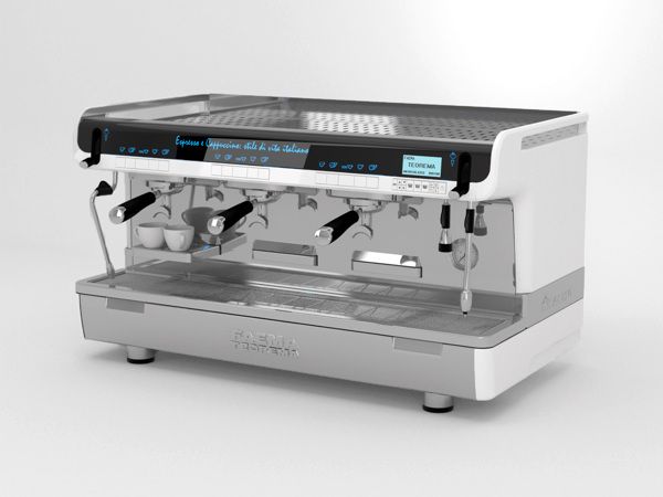 modern automatic coffee kolbowy with digital display and 3 groups. The device has a Smart boiler which allows to maintain the pressure in the coffee boiler constant, which reduces power consumption and optimizes the production of steam. 1 maker equipped with a nozzle for steam and one nozzle for hot water.