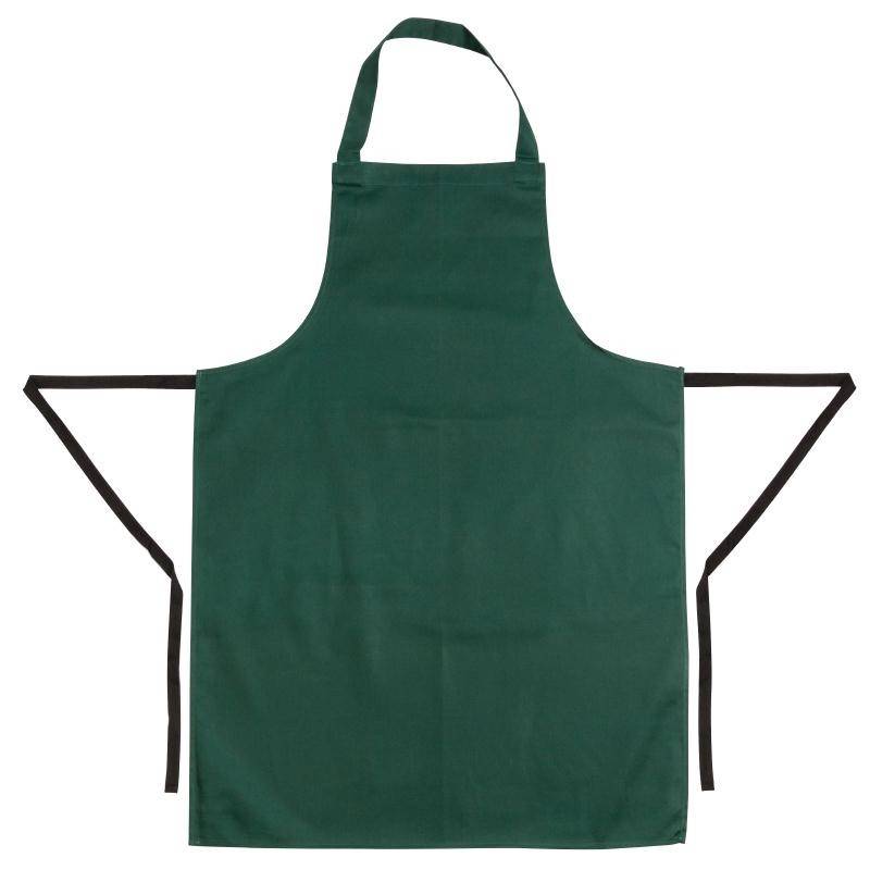 The bottle green colour apron is made from easycare polycotton, making it suitable for industrial washing so it will be perfectly clean for its next use.