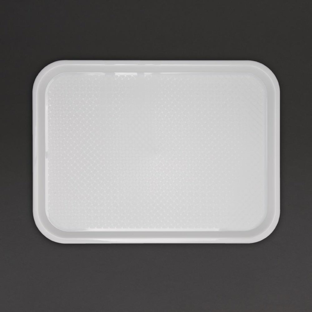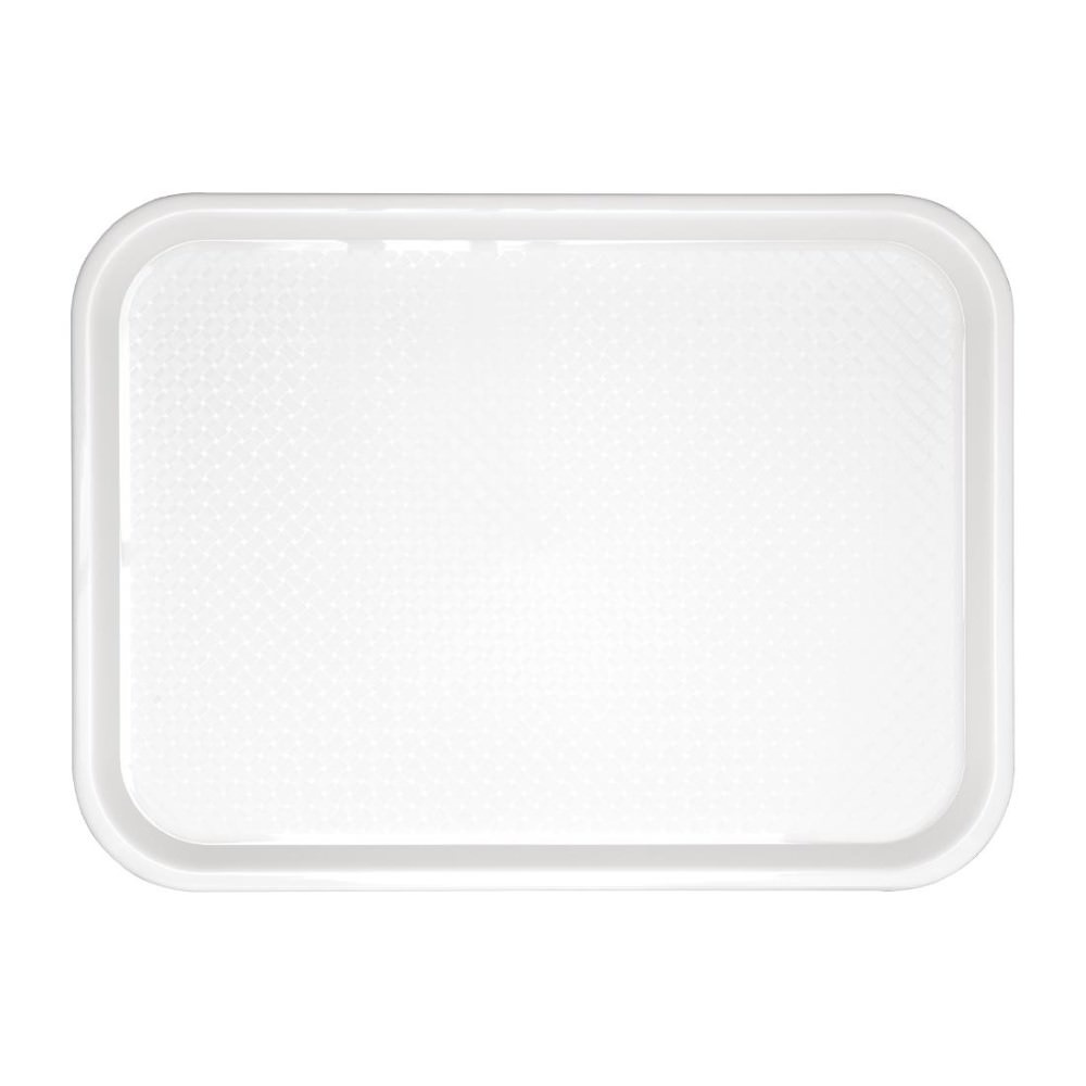 For safer, smoother self-service dining in your venue, offer customers this 415(W) x 305(D)mm white Kristallon medium plastic fast food tray. Thanks to its textured surface, this tray will prevent slipping when diners are carrying their food and drink. This will help to reduce the risk of dangerous spills or accidents during service.