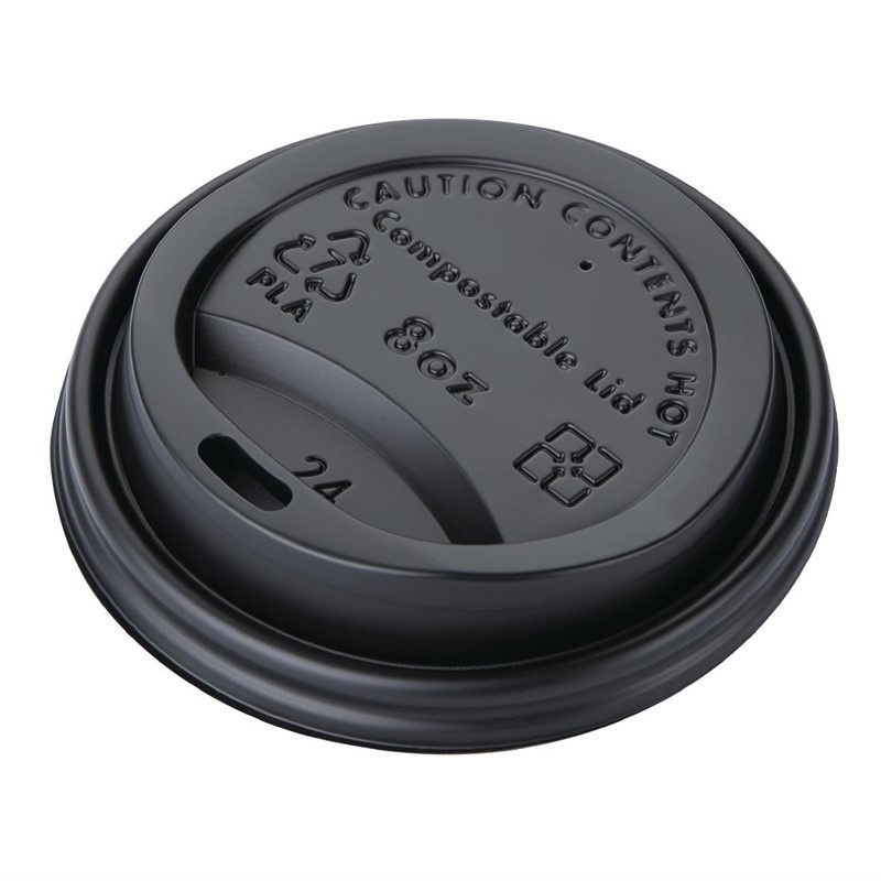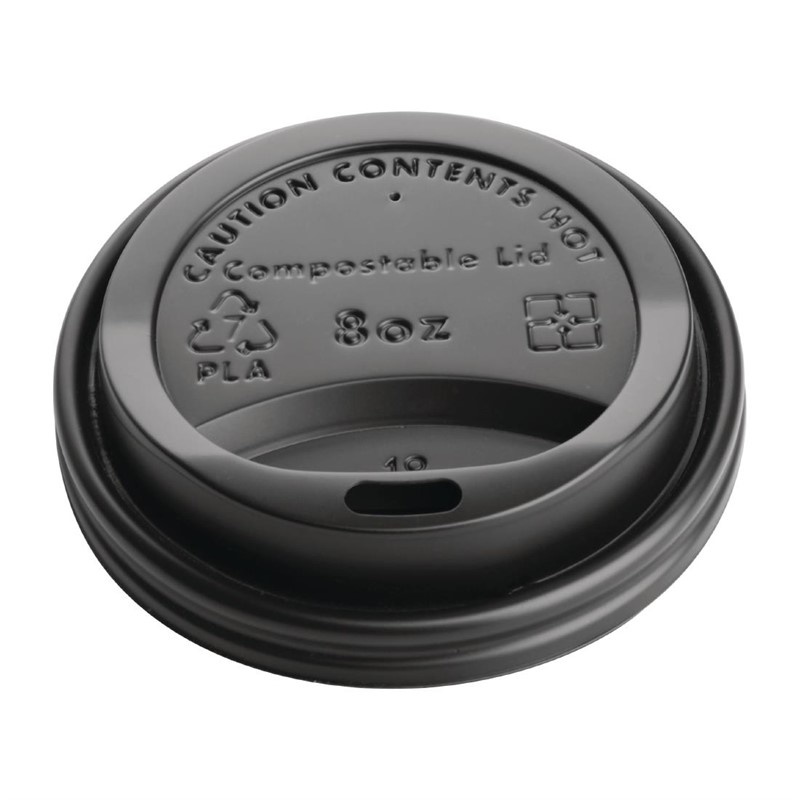 Black Compostable Coffee Cup Lids 225 ml (Pack of 50)