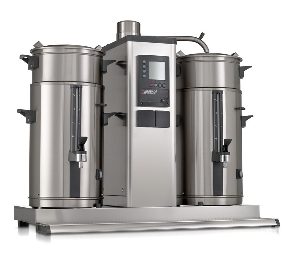 Round filtering machine for locations with water connection. Brews large quantities of coffee into separate containers. Equipped with digital display, total and day counters, descale system, coffee-is-ready signal, built-in timer and optimum security provisions. Including container(s) type VHG, filter unit(s) and drip tray.