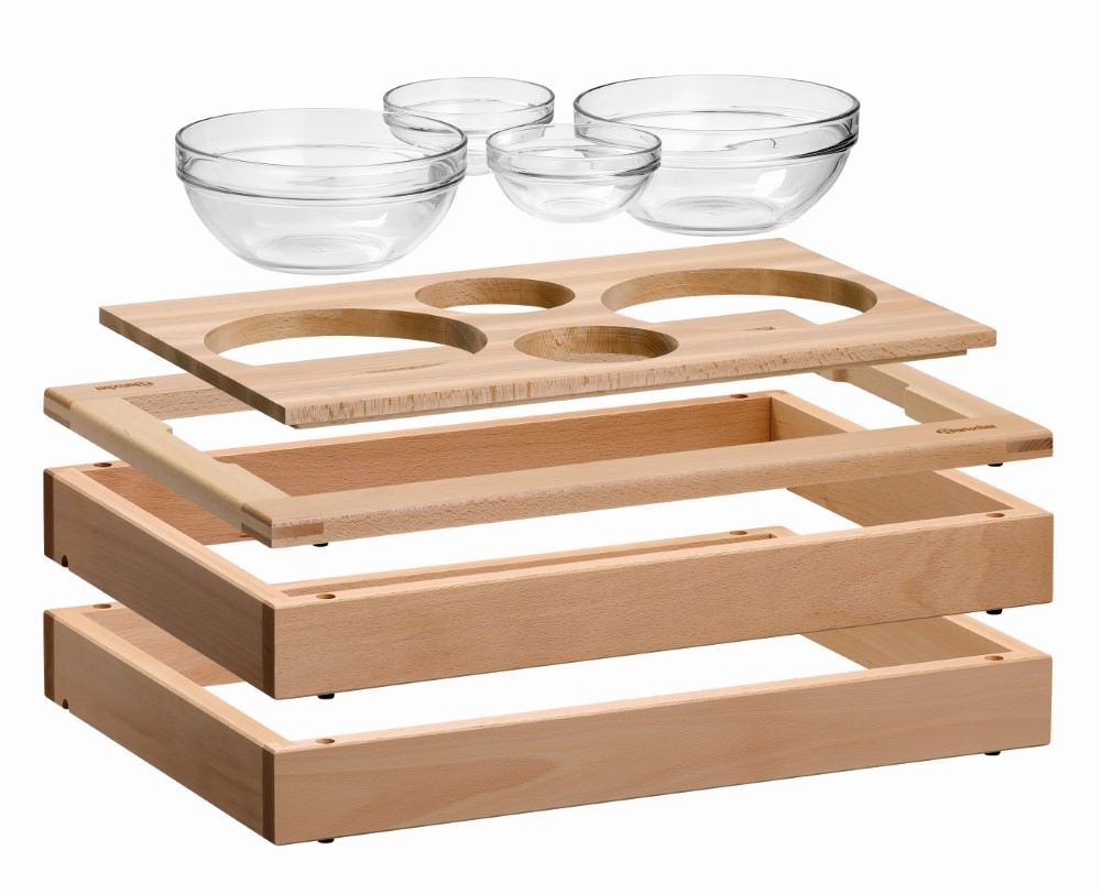 Suitable for almost all buffet system sets: The upper frame in wood design with food-safe clear varnish and a cut-out in GN 1/1 format.