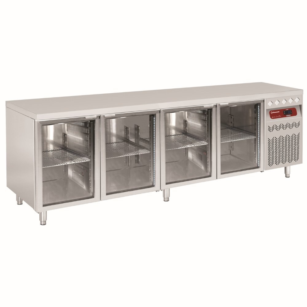 Four Door Refrigerated Table 550 L, from -2 °C to 8 °C, Side-Mounted Compressor, Ventilated