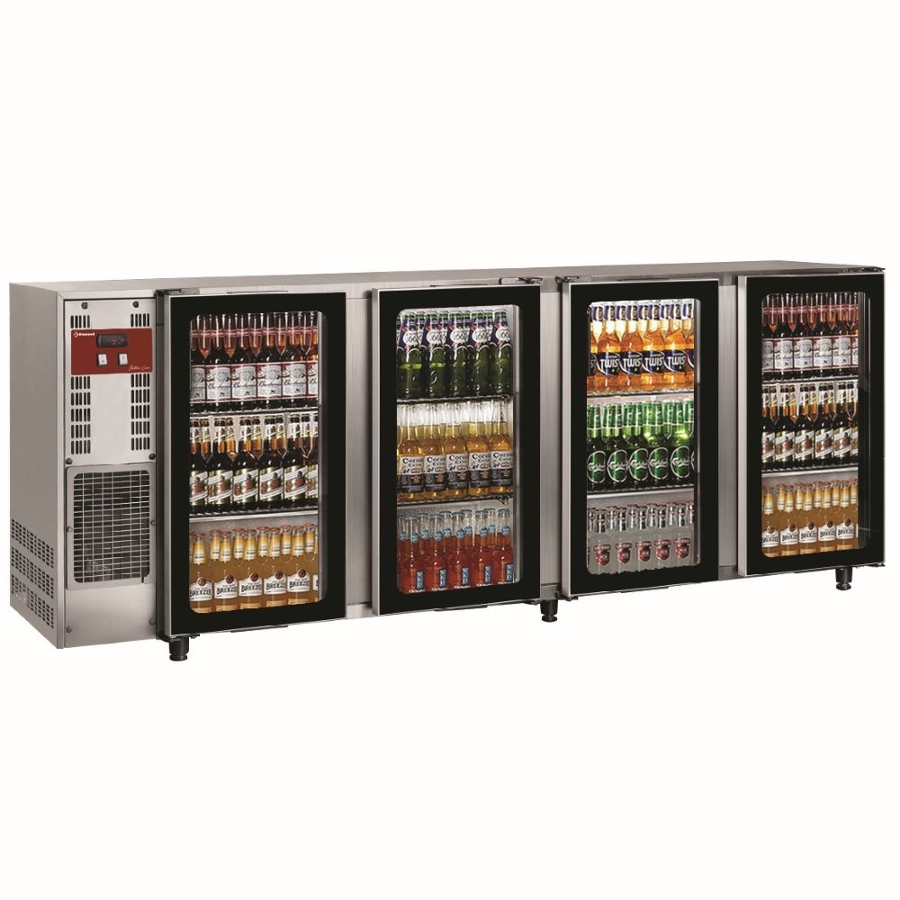 Four Hinged Glass Doors Back Bar Cooler 783 L, from 1 °C to 8 °C, Silver