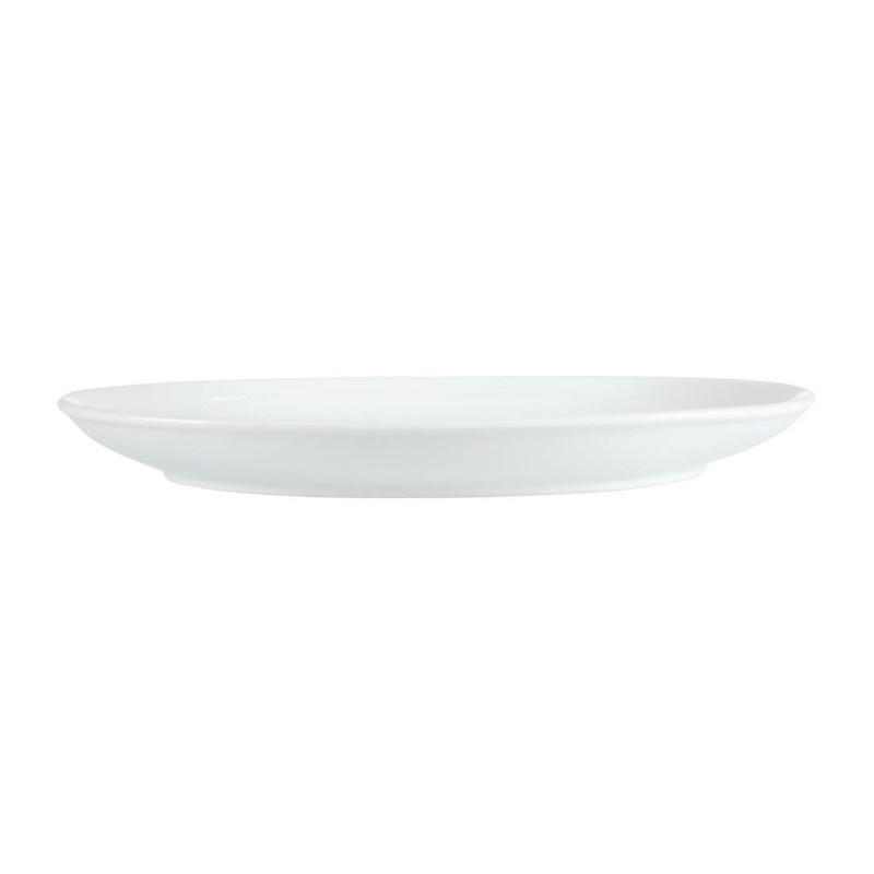 Our great value pure white porcelain deep oval 14 1/2x 9 1/4" plates by Olympia are fully vitrified for heat and shock resistance, the ideal crockery for hotels which want simplicity.