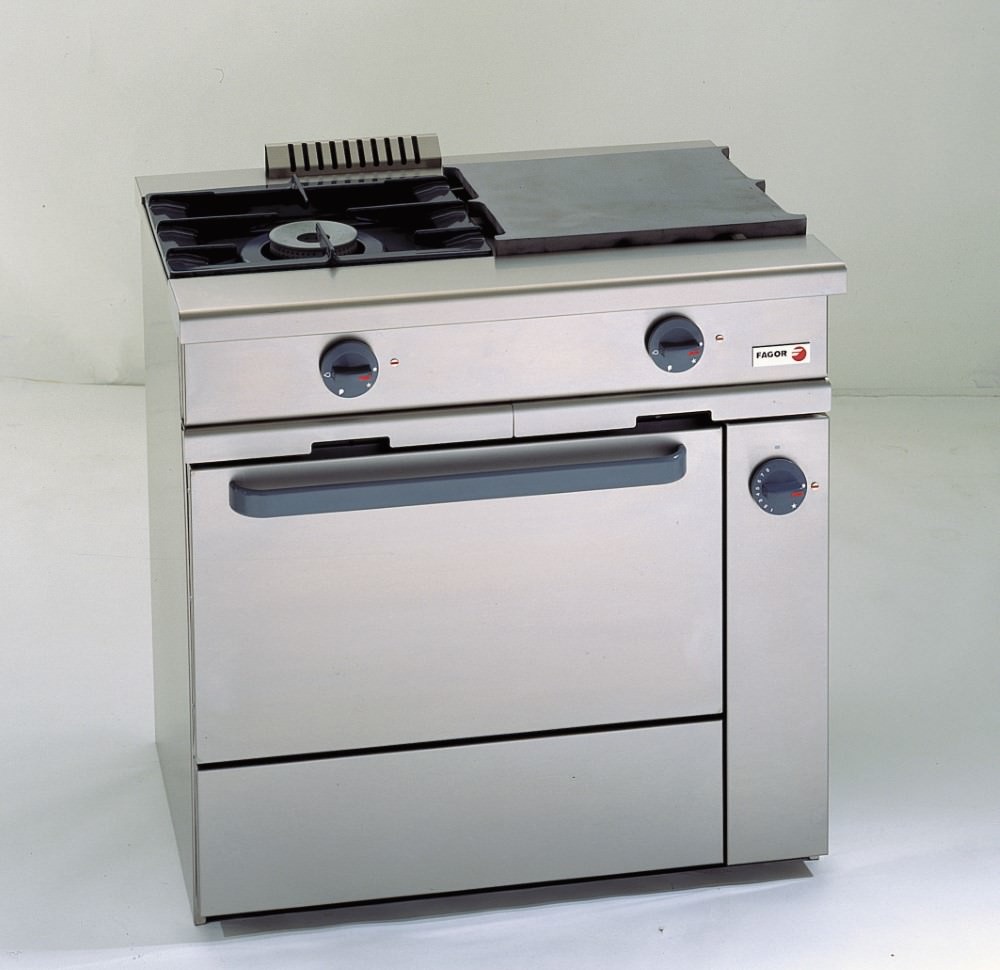 Topcoats burners with safety valve and thermocouples. Grill, hot plates and burners made of cast iron. Gutters drip into fat burners, easily removable, which are an integral part of the device. Gas oven with grill GN 1/1, power 5.46 kW, thermostatically controlled in the range of 130 to 350 ° CSpecifications