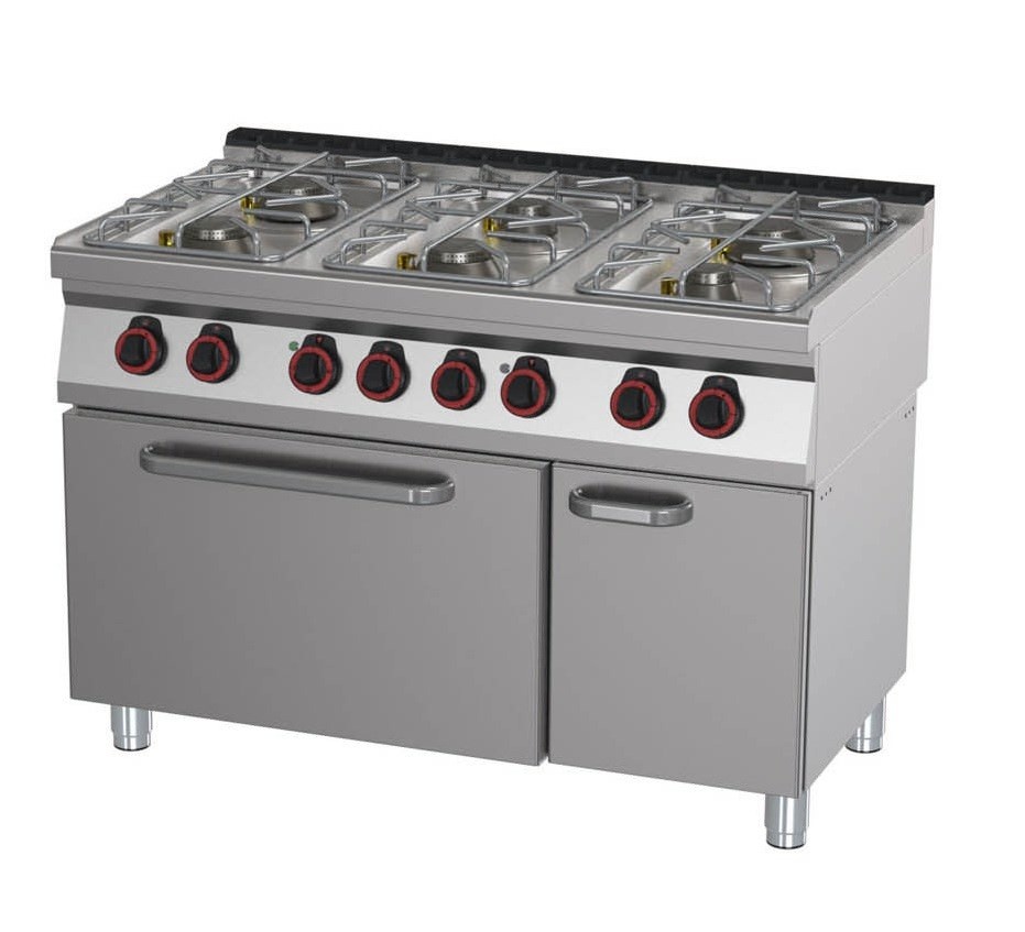 Gas Cooker with 6 Burners, Cupboard with Doors and Electric Oven GN 2/1, 45,3 kW