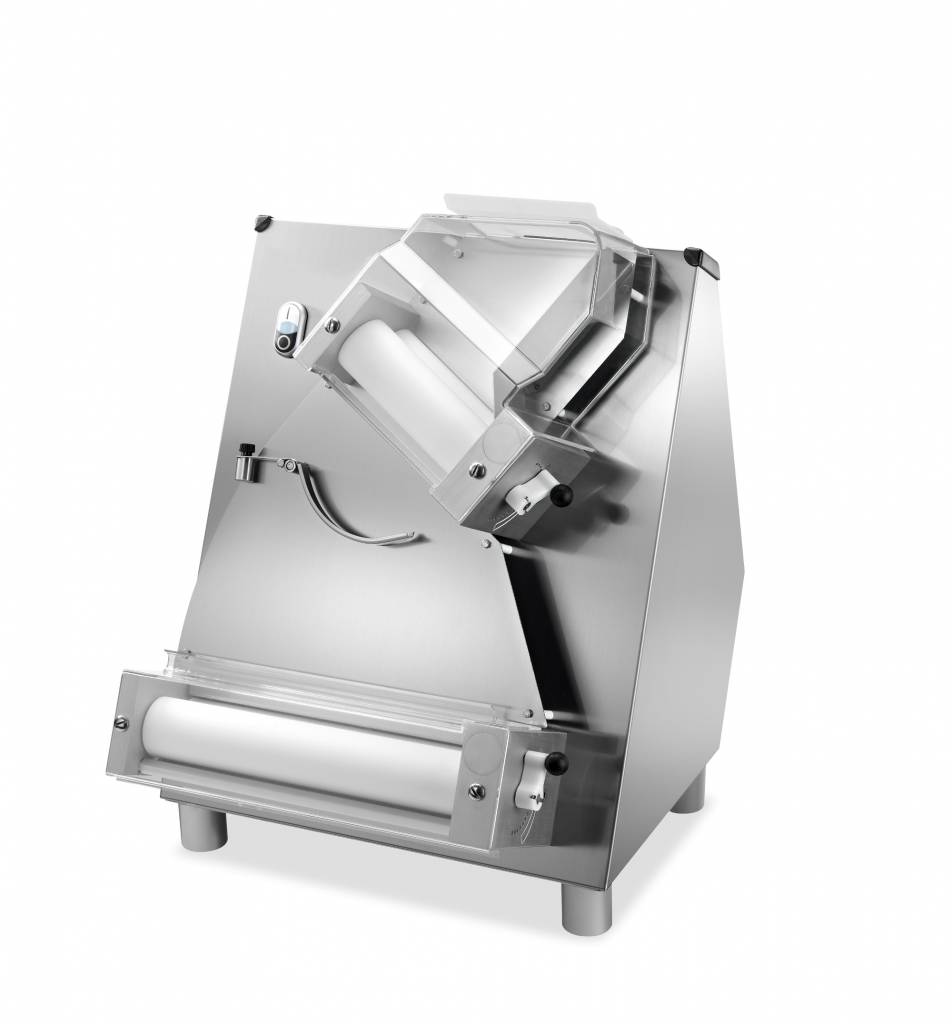 rolling pin pizza dough are designed to rozwałkowywać cake in less time and without specialized personnel. All components that come in contact with the dough are made of materials certified for food use. Available in pairs inclined or parallel shafts and variable thickness. High safety standards thanks to the DIP-switch.