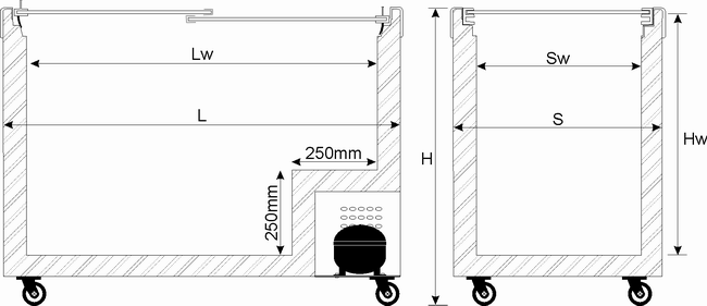 - water drain from defrosting the freezer can be made to order. It is recommended in freezers operating in rooms with high humidity and opening frequencies.