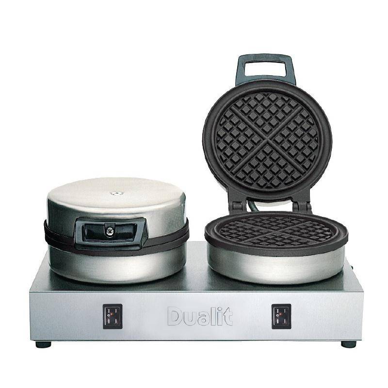 Able to make up to 60 crispy and fluffy waffles per hour, the Dualit 74002 Double Waffle Iron is ideal for professional use in restaurants, pubs and mobile catering. Designed for ease of use, simply add your waffle mix to the double-coated Teflon plates and close the lid. Once cooked, the waffles are easily removed and the machine is simple to clean. For efficiency, each plate is independently controlled, meaning reduced running costs during quieter hours.