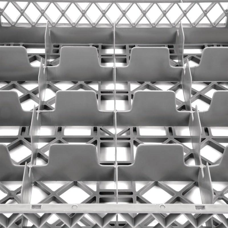 The 16 compartment Vogue glass rack is designed to hold glasses and cups safely and securely. Each compartment reduces breakages and scratches, getting the best cleaning results and saving you money on replacing glassware. Thanks to a robust plastic construction this glass rack is study and highly resistant to wear and tear.