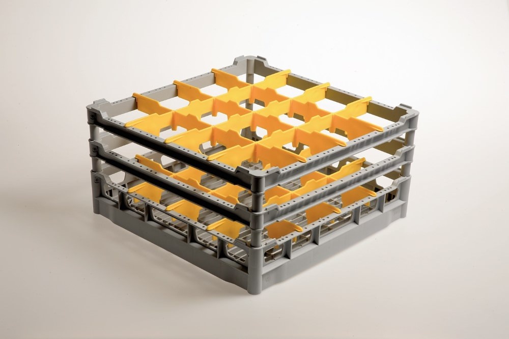 Gray - Yellow Dishwasher Glassware Basket 16 compartments / 500 x 500 x 250 mm