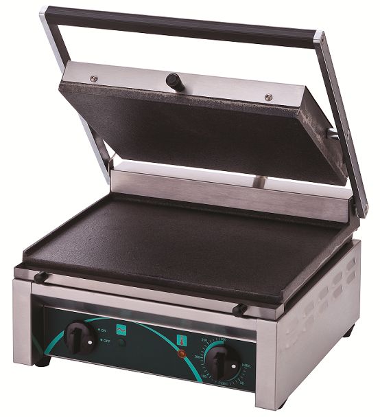 Single Cast Iron Contact Grill, Smooth Grill Plate, 380 x 280 mm, 2,25 kW
