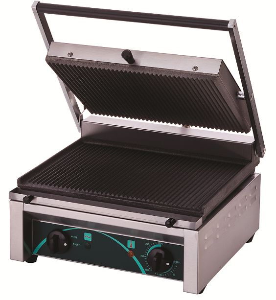 Single Cast Iron Contact Grill, Grooved Grill Plate, 380 x 280 mm, 2,25 kW