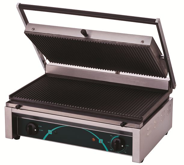 Single Cast Iron Contact Grill, Grooved Grill Plate, 520 x 280 mm, 2,5 kW