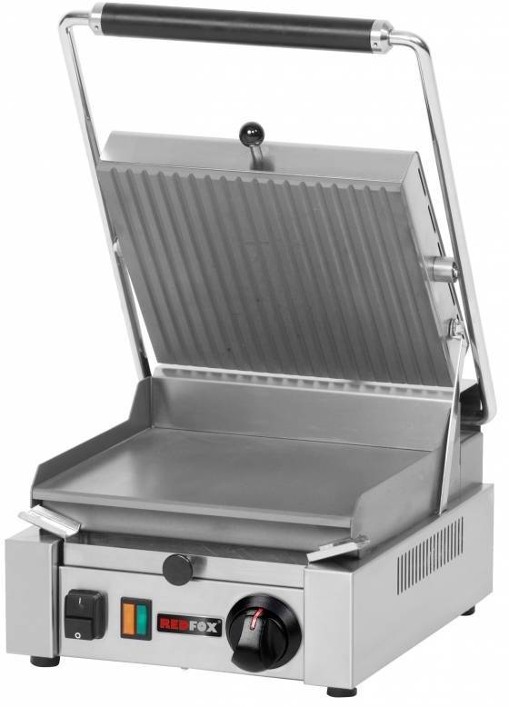 Single Cast Iron Contact Grill, Smooth Bottom Plate, Top Grooved, 260 x 240 mm, 3 kW
