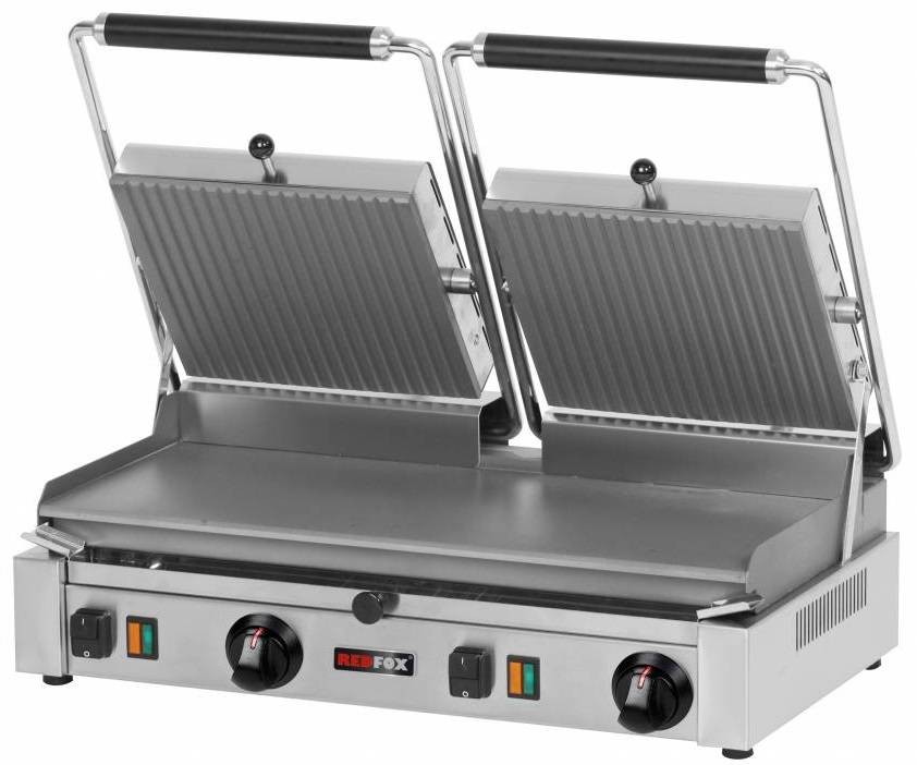 Double Cast Iron Contact Grill, Smooth Bottom Plate, Top Grooved, 570 x 240 mm, 6 kW
