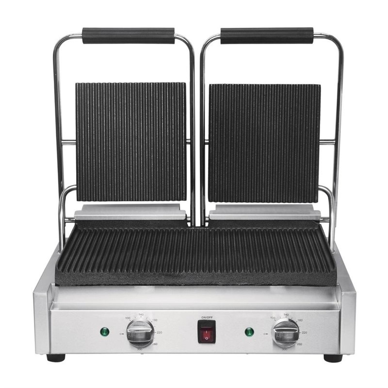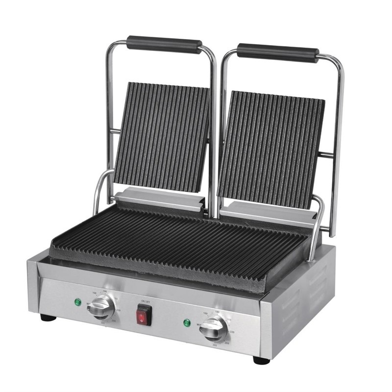 Double Cast Iron Contact Grill, Grooved Grill Plate, 210 x 226 mm, 2,9 kW