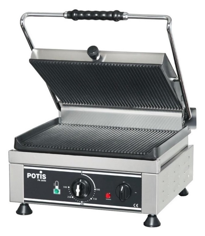 HomeRestaurant EquipmentCooking EquipmentCommercial GrillsContact GrillsGrill kontaktowy pojedyńczy, żeliwny, elektryczny 1/2 gładka 1/2 ryflowana, 2,5 kW, 230/400V, 410x500x(h)300 mm