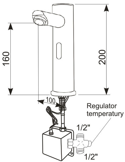 The electronic faucet standing, controlled by a photocell with manual mixing hot and cold water under the sink. Supply standard alkaline batteries 4 x 1.5V. Supplied with non-return valves. 1/2 ".