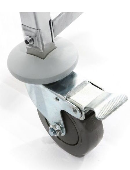 Made of stainless steel. Fitted with 5 shelves. Includes 4 castors, of which 2 with brakes, fitted with corner protection. Flatpack delivery.