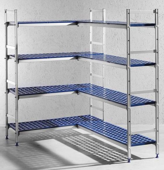Anodized aluminium frame. With dishwasher safe polypropylene shelves. Easily expandable. Carrying capacity 150 kg, distributed across the surface.