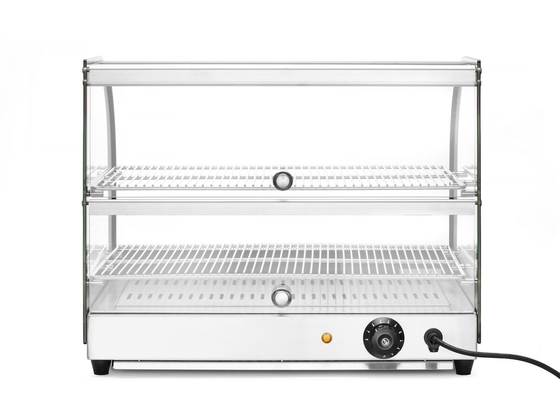 Countertop Heating Display 2-Level, 0,40 kW, to 85 °C, with Bent Glass, Black