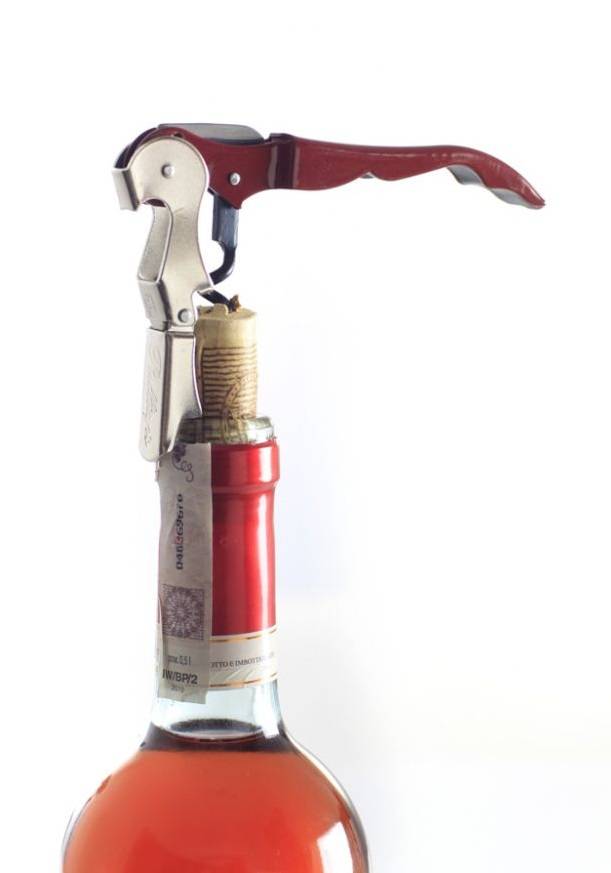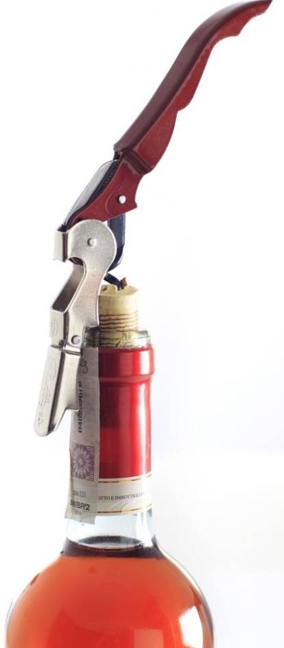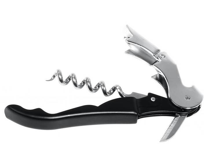With metal handle. 3 functions. With extra kink in lever for long corks.