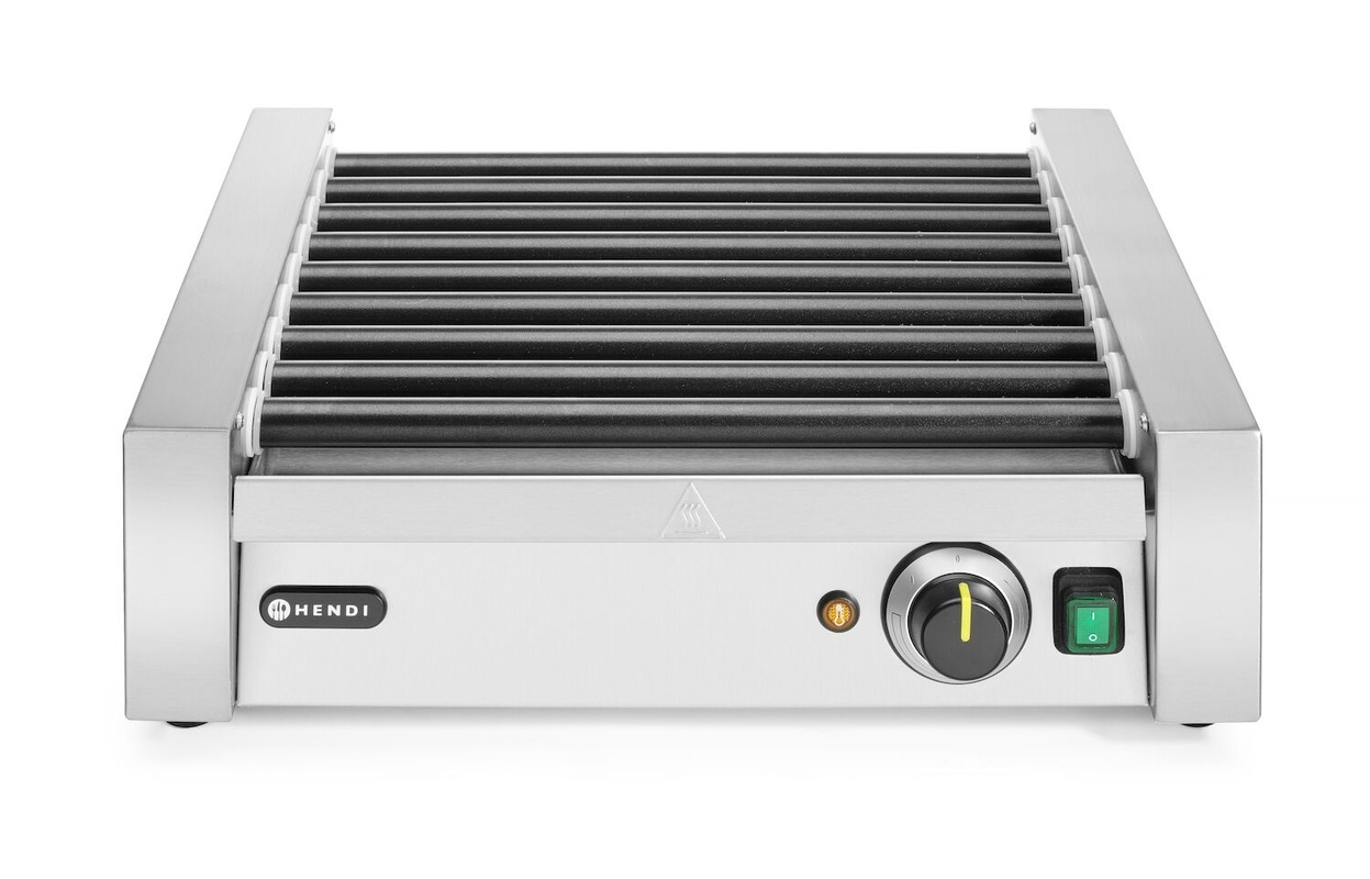 Stainless steel housing. Quick heating and heat recovery. Non-stick coated rollers. Removable easy-to-clean drip tray. The rollers have a usable width of 42 cm. Adjustable temperature up to 150°C.